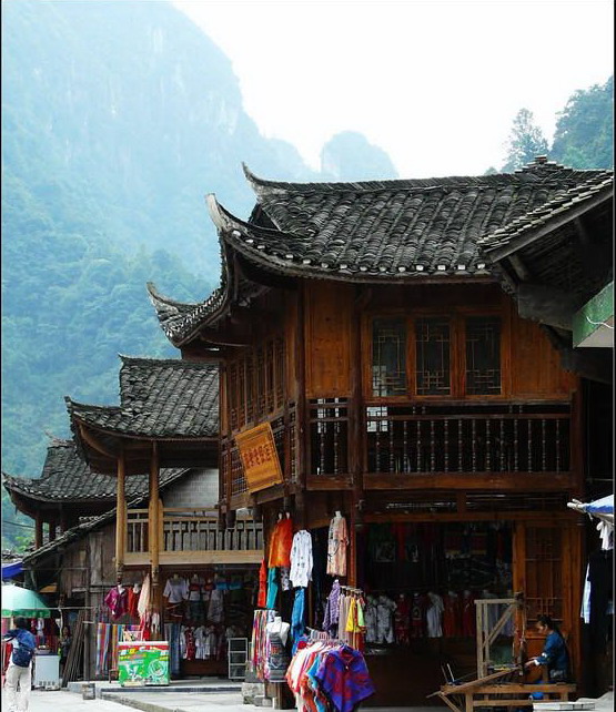 村寨四周山勢(shì)雄奇,絕壁夾天;“夯峽”、“九龍”、“玉泉”三溪在這里相會(huì),如同三根彩帶在這里相交結(jié)。這里是風(fēng)景區(qū)的中心,一萬(wàn)五千多米長(zhǎng)的青石板路從這里一直通向各個(gè)景點(diǎn)這里還是一個(gè)角度十分好的觀景臺(tái),人立于此,只要原地轉(zhuǎn)動(dòng)身子,就可觀賞到東西南北全方位的各個(gè)景點(diǎn),那含情脈脈的“相依巖”、昂首奮蹄的“駟馬峰”、惟妙惟肖的“孔雀開(kāi)屏”五彩繽紛的“彩云壁”和“畫(huà)屏峰”……盡在眼中無(wú)不景象萬(wàn)千,令人目不瑕接。詩(shī)人石元機(jī)贊曰: