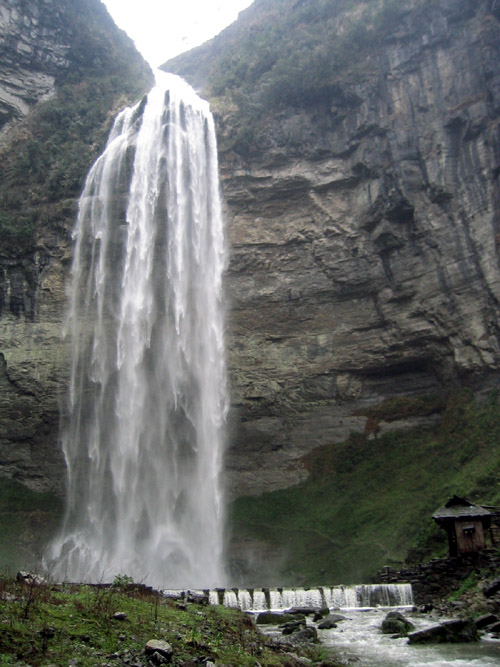 九龍溪源頭的流紗瀑布高216米,是全國最高的瀑布,有人說它還是全世界最高的瀑布,在2011年入選“2011游客最喜愛的中國十大瀑布旅游勝地”。豐水期,滾滾流水從懸崖上飛落入深潭,猶如九龍翻波,吞云吐霧,聲若巨雷,震撼山谷,氣勢磅礴,雄奇壯觀!每當(dāng)枯水時(shí)節(jié),流水飄下懸崖,時(shí)而如輕紗拂面,時(shí)而似珠簾懸掛宛如白紗蕩滌綠潭漾起層層漣漪婀娜多姿溫柔秀雅。從正面仰望瀑布,好像瀑布是從云端飛流直下,可謂“飛流直下三千尺,疑是銀河落九天。”沿潭畔走至瀑布里去,象是猴王鉆進(jìn)了水簾洞。從瀑布背后觀瀑布,只看見瀑布是從一個(gè)半園形的“月亮巖”上飛瀉下來的。瀑布在飄、舞、進(jìn)、退,如浪、如波、如紗、如練。由于峽谷變幻莫測。當(dāng)陽光照射時(shí),瀑布上簾便生出七彩長虹。彩虹隨著水珠往下飄落:只見一彩虹落下,一個(gè)又冒出來;一個(gè)緊接著一個(gè)地消失,一個(gè)緊接著一個(gè)地產(chǎn)生,那一道道閃現(xiàn)奇光的彩虹真是太美麗了!