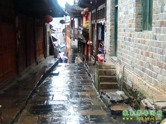 古鎮(zhèn)石板街遠(yuǎn)遠(yuǎn)望去,總感覺芙蓉鎮(zhèn)五里青石板街就像一本線裝古籍的書脊,書頁被上蒼之手打開,靜謐而又穩(wěn)重地?cái)傇谟纤舆?,那書頁上凌空的吊腳樓和發(fā)生在樓里樓外的悲歡離合便隨歲月而動(dòng),演繹出許多鏗鏘溫馨、跌宕起伏的故事來……
