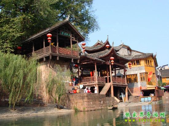 芙蓉鎮(zhèn)不僅景觀秀麗,民族風(fēng)情濃郁,還有記載土家族政治軍事歷史的國家重點(diǎn)保護(hù)文物“溪州銅柱”和電影《芙蓉鎮(zhèn)》外景拍攝現(xiàn)場(chǎng)等人文景觀。