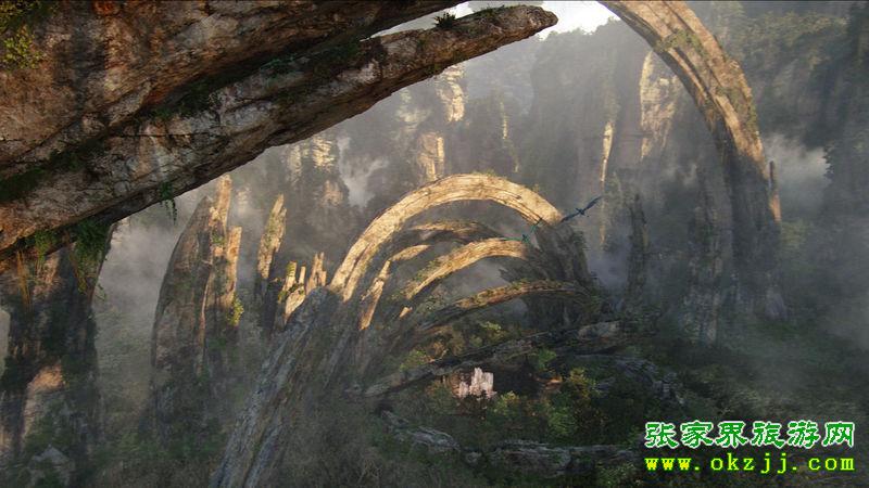 巍巍群山漂浮在天空,云霧繚繞,美麗壯觀……這是電影《阿凡達》中的經典場景。阿凡達的全球熱映使人們對這部電影充滿了驚嘆和好奇,而這部影片奇幻的拍攝地到底是在哪里這一問題也引發(fā)了影片熱愛者的紛紛推測。導演卡梅隆的一句“中國元素給《阿凡達》大大增色”不僅勾起了旅游愛好者的向往之心,更是引發(fā)了一場不小的爭論。片中美輪美奐的“哈利路亞山”讓人驚嘆向往,現實版的“哈利路亞山”到底是以黃山還是張家界的武陵源為背景,成了網友和旅游界的熱議焦點。“第42秒出現過張家界的南天一柱,第33分21秒出現過黃石寨的玉屏峰,第55分53秒出現過寶峰湖的瀑布……”在網上,有發(fā)帖者將這些在《阿凡達》影片中出現過的張家界景致一一羅列。通過慢放發(fā)現,影片中大概有25分鐘完全是張家界的山水風光。出現多次的是黃石寨前山的南天一柱,金鞭溪的劈山救母出現不低于5次,然而出現最多的還是寶峰湖瀑布和袁家界迷魂臺里面的擎天柱。而張家界和黃山的最大區(qū)別是黃山是花崗巖地貌,上面非常光滑,幾乎沒有植被,而張家界是石英砂巖地貌,上面植被覆蓋非常茂盛。