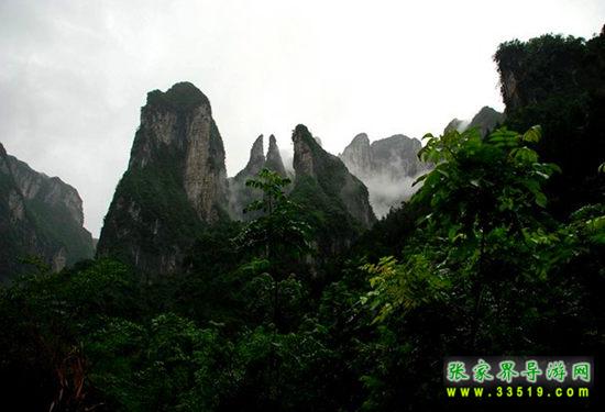 七星山介于天門、熊壁山、崇山三山之間,四座山均為四面刀載絕壁試絕壁,海拔也均在1500米以上,構(gòu)成了中國版土中最為大氣壯觀的呈垂直角度的孤峰地貌群落。而七星山為其最高最大者。