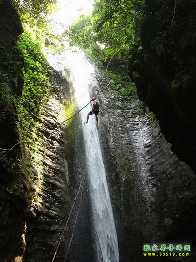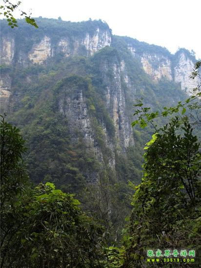 【吳王坡】來到這里以后,面前的絕壁逐漸開闊,視野角度也慢慢放大。從我們這里平視出去,就可以看到對面絕壁的全貌,從山巔到溪谷的底部,一覽無余。對面的絕壁后面,就是著名的吳王坡村。相傳,李自成帶著大順帝的光環(huán),敗走北京城以后,轉(zhuǎn)戰(zhàn)秦嶺,先后渡過黃河和長江,一路南下,來到了湘西,最后還是回天無力,只有兵敗歸隱,在緊鄰我們張家界市的常德市石門縣的夾山寺皈依佛門。對面的吳王坡村,就是傳說中“沖冠一怒為紅顏”的吳三桂追殺李自成起義大軍,和起義軍進行生死決戰(zhàn)的古戰(zhàn)場之一。傳說吳三桂在此大勝李自成起義軍,殺死起義軍幾千人,是吳三桂一生之中的“惡仗”之一。當(dāng)?shù)氐?a class="insidelink" href="http://www.hkyjjc.com/fengqing/" title="土家">土家人后裔,根據(jù)這段歷史上的傳說,將村子的名字叫成了“吳王坡”。吳王坡村的名字又叫吳亡坡,這個“亡”是“滅亡的亡”,是說吳三桂雖然此戰(zhàn)勝利以后,坐鎮(zhèn)云南,被封為“平西王”,最后還是在“三藩叛亂”之中走向了滅亡。而滅亡的因緣和轉(zhuǎn)折,在當(dāng)?shù)乩习傩湛磥?,就是這里,就在吳王坡。所以,吳王坡又有了“吳亡坡”的名字演繹成分。