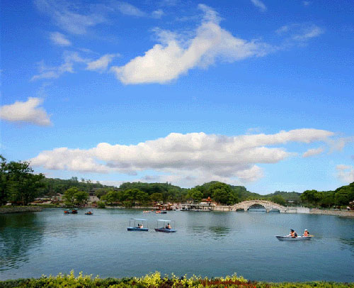 君山又是一個秀麗的綠洲,島上的草木自古就很聞名?,F(xiàn)在每逢初春漲水之前,湖灘上綠草綿綿,野花斑斕,頗具草原風味;一到夏天水漲,葦葉青青,水鳥出沒,又是一派蘆蕩景象。君山有各種各樣的樹,多達200余種,各種花卉,四時怒放,真是青碧連云,香飄全島。叢綠之中,尤以竹林、茶園最富特色。