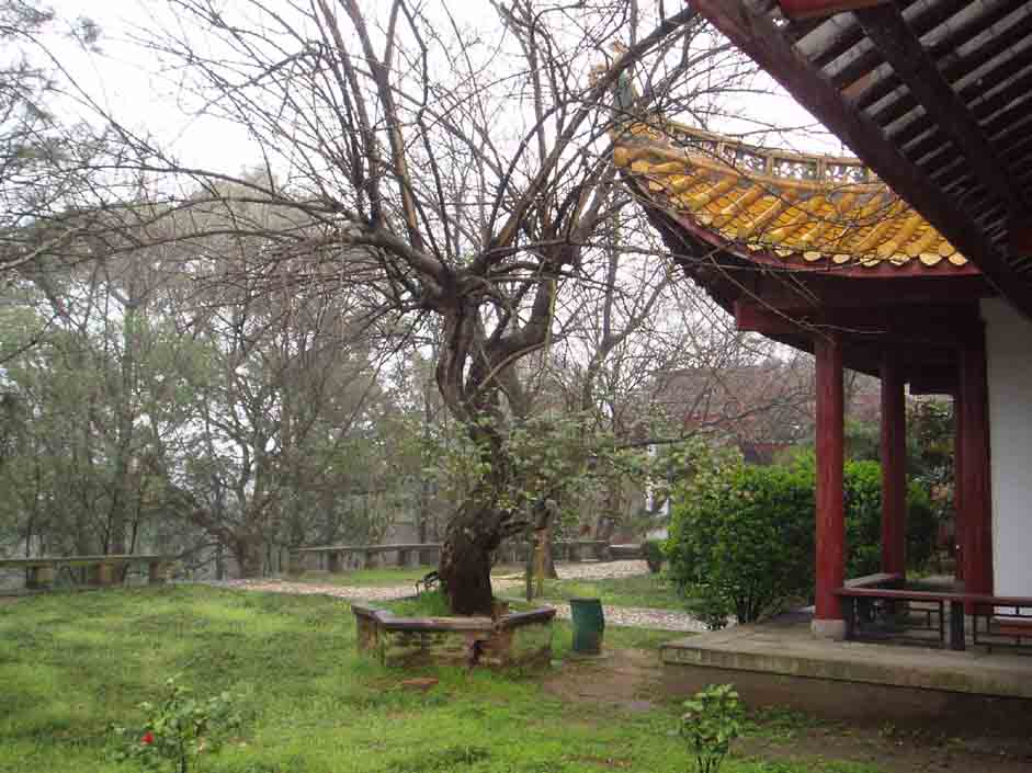 酒香亭在君山中部的酒香山峰上,掩映在翠竹藤蔓之中。入亭小憩,不僅鳥語花香,更有一股隱隱酒香撲鼻。原來此山中生長著一種開黃色小花的青藤,花香帶著酒味,這種藤叫酒泉藤,傳說用藤上小花釀的酒,喝了長生不老,可以成仙,這事傳到漢武帝耳里,他便派使臣欒巴率領(lǐng)男女數(shù)十人趕來君山,取回了仙酒。酒到京城,卻被當時能言善辯的臣子?xùn)|方朔偷飲了。漢武帝得知,“龍顏”大怒,要將東方朔斬首。東方朔不慌不忙地奏道:“如果喝了此酒真會長生不老,可以成仙,皇上就殺我不死,如果臣被殺死了,此酒皇上喝了也不會長生不老。”武帝無言以對,便赦免了他。這事傳到了君山,人們便在酒香山修了酒香亭,以為紀念。如今的此亭,為一九八一年恢復(fù),占地近三十二平方米,高六米余,為四柱方形、磚石木混合結(jié)構(gòu),古香古色,富有詩意。