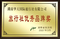 我們是您的最佳選擇! 值得信賴。 另: 1、2009年經(jīng)省旅游局和省世博辦推薦,華天國旅成為上海世博會(huì)團(tuán)隊(duì)票合作銷售“湖南省唯一指定旅行社”。 2、最新評定:華天國旅為 湖南五大地接社之一 (2010年4月22日) 3、最新評定:華天國旅為:湖南五星級(jí)旅行社 (2010年5月10日)