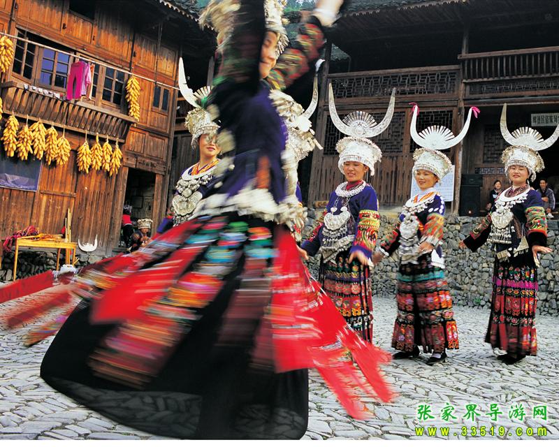 苗族在歷史長(zhǎng)河中創(chuàng)造了珍貴的文學(xué)藝術(shù)。苗族民間文學(xué)分為民間歌謠、民間故事和諺語(yǔ)三大集成。民間歌謠分為史詩(shī)、古歌、苦歌、敘事歌、生產(chǎn)歌、風(fēng)俗歌、起義歌、情歌、兒歌等,能唱的韻文作品有《遷徙歌》、《勞動(dòng)歌》、《開親歌》、《盤龍歌》、《盼紅軍》、《送兒當(dāng)紅軍》、《苗家想念紅軍》、《初戀歌》、《定姻緣歌》等。民間故事有《雷公和高比的故事》、《崇山的傳說》、《蘆笙是怎樣吹起來的》、《謊江山》、《石姓不吃狗肉》、《龍家姐妹》、《紅軍樹》等。苗族民間藝術(shù)分為音樂、舞蹈、戲劇和工藝四類。音樂又分為苗歌和樂器兩類。苗歌按其腔調(diào)分為高腔、平腔兩類;樂器按演奏方式分為打擊樂器和吹奏樂器兩類。打擊樂器有銅鼓、銅鑼、銅鈸和鈴等。吹奏樂器有嗩吶、蘆笙、長(zhǎng)號(hào)、筒簫等。苗族舞蹈有木鼓舞、蘆笙舞、跳香舞和接龍舞。苗族戲劇有儺堂戲、花鼓戲和苗戲等。苗族工藝有刺繡、挑花、織花帶、織提籃、織背簍、蠟染和銀飾等。其中,苗繡、花帶、苗族織錦、苗族銀飾、蠟染服飾和飯簍等工藝品已經(jīng)成為張家界風(fēng)景區(qū)的旅游紀(jì)念品,為海內(nèi)外無數(shù)游客喜愛。