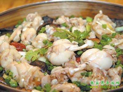 華南湍蛙,又名石蛙,當(dāng)?shù)厣矫袼追Q“梆梆”,屬兩棲綱蛙科動物,它是捕捉水蛇的能手。華南湍蛙平常生活在溪流石潭中,有時晚上上岸活動。它與斑魚交配產(chǎn)子。華南湍蛙無論白天或黑夜,都能發(fā)出“梆梆”的叫聲,故俗名“梆梆”。華南湍蛙的肉十分細(xì)嫩鮮美,尤其燒湯,比雞湯還香甜。它營養(yǎng)豐富,是名貴食品之一,也是待客的上品。