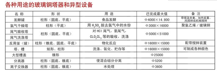 1.目前生產(chǎn)的型號有很多規(guī)格,可以根據(jù)用戶的要求設(shè)計(jì)制造不同規(guī)格的玻璃鋼塔器。