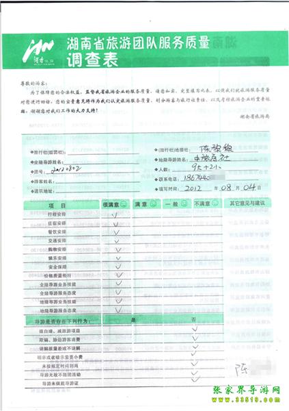 2012年8月4日陳先生一行11人旅游質(zhì)量反饋