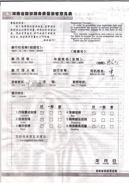 2011年5月29日寧先生旅游質(zhì)量反饋