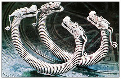 銀飾以其多樣的品種、奇美的造型和精巧的工藝,不僅向人們呈現(xiàn)了一個(gè)瑰麗多彩的藝術(shù)世界,而且也展示出一個(gè)有著豐富內(nèi)涵的精神世界。銀飾的種類較多,從頭到腳,無(wú)處不飾。除頭飾、胸頸飾、手飾、衣飾、背飾、腰墜飾外,個(gè)別地方還有腳飾。