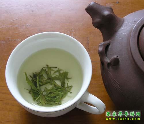 武陵源風(fēng)景區(qū)盛產(chǎn)香茶,著名的有“青巖茗翠”、“龍蝦花茶”、“黃石寨云霧茶”、“天崇毛尖”與“索溪毛尖”等。通過1982年評(píng)比,“青巖茗翠”獲部級(jí)金杯獎(jiǎng),同年又獲全國(guó)首屆食品博覽會(huì)銀獎(jiǎng)。“龍蝦花茶”也已列入全國(guó)名茶。人們經(jīng)過品嘗、評(píng)比,并經(jīng)茶葉專家鑒定,一致認(rèn)為“青巖茗翠”、“龍蝦花茶”等具有外形美觀,內(nèi)質(zhì)優(yōu)良等特點(diǎn)。這種茶葉,從外形來看,條索緊結(jié),圓渾彎曲,苗鋒顯露,銀毫滿披,色澤翠綠,從內(nèi)質(zhì)來看,清香馥郁,味醇回甘,湯色綠明,葉底均勻,飲后爽神,具有熟板栗蘭花之奇香,飲后回味無窮。據(jù)考證,“青巖茗翠”屬高山云霧茶一類。自古道:“高山出好水,云霧育佳茶”。黃石寨枇杷界海拔1000多米,氣候溫和,云霧繚繞,溫度適宜,因而,茶葉嫩度高,品質(zhì)好。這種獨(dú)特的環(huán)境為茶葉中的氨基酸,咖啡堿等有效成分的形成和增長(zhǎng),提供了優(yōu)越的生長(zhǎng)條件,而對(duì)質(zhì)地粗老的纖維素的形成,則又起到了抑制作用。還有,這些山峰上日照短,直射光少,漫射光多,晝夜溫差大,土質(zhì)的有機(jī)質(zhì)豐富,因而結(jié)構(gòu)疏松,排水又好。一切這些因素,都為茶葉的平穩(wěn)生長(zhǎng)創(chuàng)造了良好的條件。所以“青巖茗翠”茶,就博得了各地名家的一致好評(píng)。湖南省茶葉學(xué)會(huì)秘書長(zhǎng)、湖南農(nóng)學(xué)院副教授朱先明品了這種茶以后,賦詩(shī)贊美:
